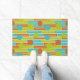 Lime Green, Cinnamon Brown, Turquoise Rectangles Doormat