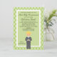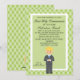 Start your celebration off with this adorable invitation for that special boys First Holy Communion. It has a lime green with light green polka dot border. in the centre there's a light green centre with a white border around it There's an adorable boy wearing a grey suit with a blue tie . He has bronde hair. Check out the many other items in this line such as labels, postage, thank you notes, and more.