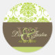 Green Damask Monogram wedding stickers (envelope sealers), shades of chocolate accent. Great for everyday use. Fully customisable. Fonts and back ground colours can be easily changed. Copyright © 2009 PixDezines.com and PixDezines on zazzle.com