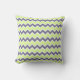 Modern throw pillow features a colourful and trendy chevron pattern in lime green, white, and dark grey.
