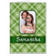 Easily personalise this retro lime green gingham pattern design by adding your own photo of your loved one and name or text to the templates to make a unique customised product. Visit the PHOTOGIFTZ STORE for matching products. The template photo image text and can easily be replaced with your own, Photographs of the same 4 x 3 dimension should replace the template image exactly. If your photo is of a different dimension you may have to use CUSTOMIZE to adjust the size, of the photo and text, by drag and drop.