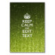 Your festive personalised Keep Calm saying on a fine custom stylish lime green decor. Humourous or whimsical try on your creative words on two editable lines of text. Remember to use CAPITAL letters for best results.