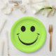 Bright Lime Green Personalised Happy Face Birthday Paper Plates.