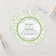 Lime green leaves pattern round wedding invitation. The focus of this lovely wedding invite is a floral pattern made of leaves in green and a white frame with scalloped green outline that holds your wording.