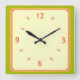 This square clock design features a lime green border with a pale lemon centre. Complimentry colours of Peach for the numerals. View a large range of Simplistic Colourful Clock Designs from Orientcourt! I appreciate your time in viewing my clock designs! Jillian