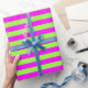 Lime Green Pink Stripe Pattern Modern Wrapping Paper