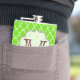 Lime Green Quarterfoil Lattice Quarter Foil Monogram Initial Personalised Custom Fabric Pattern Whiskey Flask