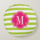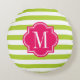 Lime Green Stripes with Hot Pink Monogram Round Cushion