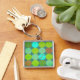 Lime Green Teal Turquoise & Rust Circles Monogram Key Ring