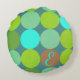Lime Green Teal Turquoise & Rust Circles Monogram Round Cushion
