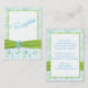 This flowery lime green, aqua blue, and white enclosure reception card with FAUX ribbon and flower brooch matches the Bat Mitzvah invitation shown below. If you require any other matching items, please email your request to niteowlstudio@gmail.com.