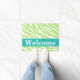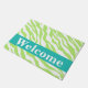 Welcome visitors to your home with this stylish and sophisticated lime green and white zebra skin pattern door mat. This door mat is customised with the word Welcome that you can change to another word or name. A turquoise teal blue strip gives an area for personalisation and an additional pop of colour. Enjoy this popular and contemporary design that will add a trendy home decorative accent. This design is available in several colour combinations in this store.