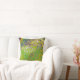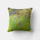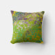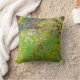 This throw pillow features a bold and imaginative design. A vibrant lime green background is filled with a unique pattern of purple "cell invaders," creating a playful and graphic look.