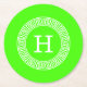 Lime Green Wt Greek Key Rnd Frame Initial Monogram Round Paper Coaster
