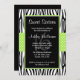 A sassy zebra print and lime green polka dot pattern is featured on this trendy sweet sixteen birthday invitation.