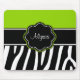Show off your personal style in a fun way with this lime green and zebra print mouse pad.