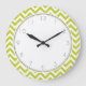 Lime Green Zigzag Stripes Pattern Large Clock