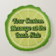 Green lime skin background on front side. Round lime slice on back side. Custom text on both sides.