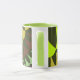 This colourful fractal coffee mug has bright and vibrant colours such as green and brown. These mugs have several different colours to choose from for the inside and handle of the mug. Also, you can choose from the style and size of these mugs. These mugs are great for kitchen and office use.