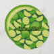 Front side. Lime slices and leaves. Seamless pattern. Custom background colour. Custom text. Back side: Round slice of lime background. Custom text fields for event information.