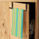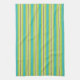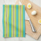 Lime and turquoise stripes decorate this festive kitchen towel. The design is from original art.