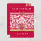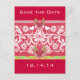 Save the Date Lime & Raspberry Winged Hearts and White Damask Shown Deep Rich Raspberry Pink But You Choose Card and Font Colours