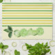 This colourful towel features beautiful graphics of a whole lime, some lime wedges and lime slices at the bottom. The remaining part of the towel is a pattern of alternating yellow and lime green stripes against a white background. There's another coordinating towel, as well as an oven mitt and pot holder set and an apron in my shop too, so take a peak!