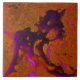 The purple and orange original abstract artwork on this Ceramic Tile was made from an original photograph of limestone, in a sandbar at the beach. The purple and lavender shape on the rustic orange background almost looks like an animal romping in a field.