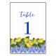 Limone I Italian Lemon & Blue Tile Table Numbers