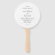 Modern wedding program hand fan featuring a simple design with your monogram and event details in a handwritten script.