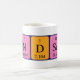 Lindsey spelled out as Li N D Se Y (Lithium Nitrogen Deuterium Selenium Yttrium) on a mug for the scientist in you.