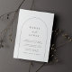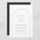 A beautiful minimalist typography based wedding invitation featuring your names in classic lettering, joined with modern handwritten script accent lettering, beneath a thin line arch illustration. Personalise with your wedding details beneath. Our Ash colorway makes a classic statement with soft black lettering on a crisp white background.