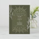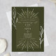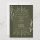 Illustration of green arch shape decorated with white line art with minimalist script and botanical designs.