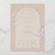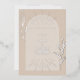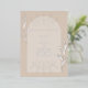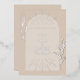 Tan arch over tan background with line art script and botanical designs.
