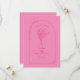 Illustration of bouquet line art botanical arch border. Background is pink. Artwork and text are red.