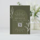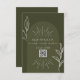 Wedding RSVP with green colour scheme, arch, and white text and botanical line art details. Replace the QR code with your own.