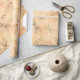 Line art dragonflies birds flowers peach pattern wrapping paper