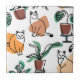 Line art drawing cats and flowers ceramic tile