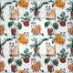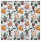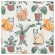 Line art drawing cats and flowers fabric