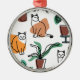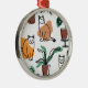 Line art drawing cats and flowers metal ornament