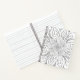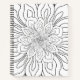 Line art drawing of a trippy flower in black for you to colour in as a colouring page. Choose from sketchbook, bullet journal, checklist, graph paper, recipe book, or lines in various widths and colours. Also choose a spine colour to further customise your notebook look.