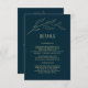 Line Art Leaves Deep Blue Elegant Wedding Details Enclosure Card