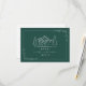 Wedding RSVP with mountains and evergreen illustration with botanical border. Background is dark teal.
