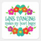 A beautiful way to show how you feel about line dancing. Enjoy this colourful design with fun flowers and a heart and the words - Line Dancing makes my heart happy.