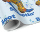 Line dance gift wrapping paper with a cowboy boots and music symbols behind them and the text "Boot Scootin". This design is available in a couple of different colours.