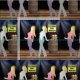 Line Dancing Women With Caution Sign 2.4" Square Fabric