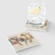 The coasters are gorgeous, a quality feel and heavy weight. They look like a precious archeological find. A rustic stone juxtaposed with a modern floral black and white print. I like the way the print goes slightly imperfect on the cut stone edges giving them a kind-of natural beauty.