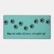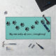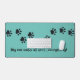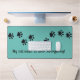 Line of Black Paw Prints Design Desk Mat with customisable background colour and text.