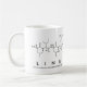 Line spelled out in amino acids as L I N E (Leucine Isoleucine Asparagine Glutamic acid) on a mug for the scientist in you.