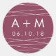 Personalise these simple seals with your initials and wedding date for a chic way to finish your invitations, favours and more. Design features clean white lettering on a deep burgundy berry background crisscrossed with white geometric lines. Designed to match our Lineation wedding invitation collection in Marsala.